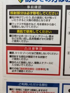 ・VIOや顔の照射はNG