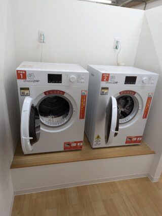 乾燥機も洗濯機の反対側の方に置いてありました。しかし、以前はここにドリンクサービスが置いてあると思ったのですが無くなったのかと思えば…
