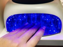ベースカラーを塗り、次にUVライトのマシンに塗り終えた爪を入れベースカラーを固めて下さい。