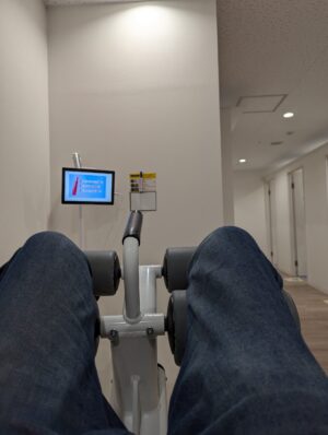 チョコザップ 阪急園田駅店の店舗内の様子はこのような感じでした。上腕2等筋を鍛えるバイセップスカールが設置されているのが、珍しいです。
