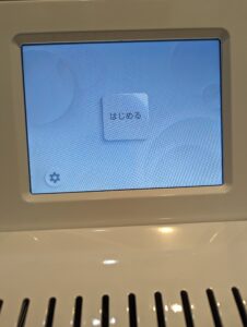 マシンの画面表示の”はじめる”のボタンを押してください。反応がない場合はコンセントの確認を押してください。