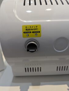 脱毛マシンの電源の入れ方です。まず、写真のようにツマミが横になっている状態が電源OFFです。