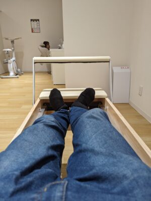 実際にアプリから予約してピラティスを体験してきました。これがピラティスのマシンです。