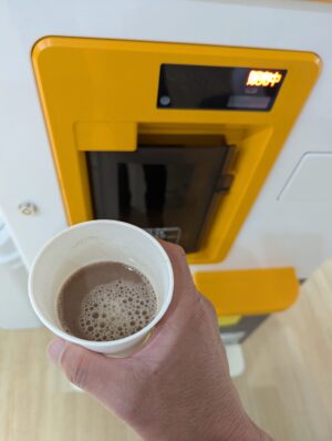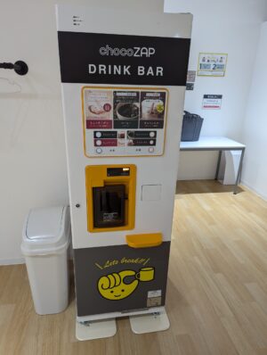 運動でのどが乾いたらドリンクバーを利用します。「チョコッスル」といて大豆ペプチドでタンパク質補給とマイルドなココアのような甘さが飲みやすくて疲れた時には